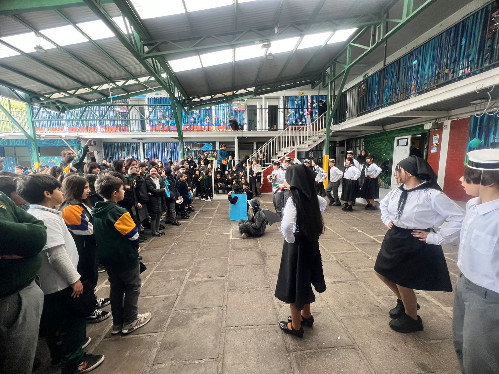 "Nuestra Comunidad Educativa realizó este lunes un acto en homenaje a las Glorias Navales, fecha que conmemora el aniversario del Combate Naval de Iquique, día en que los hombres de la frágil Esmeralda, comandados por Arturo Prat, dieron su vida por una causa que les parecía justa y necesaria, en un combate muy desigual contra la tripulación del poderoso Huáscar.