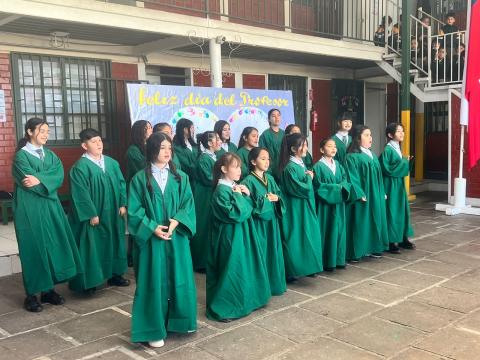 Para esta ocasión, se preparó un simbólico acto, a cargo de las estudiantes Paloma Saavedra y Carolina Soriano, donde contamos con la participación de los integrantes del coro de nuestro Colegio y con la destacada participación de nuestros estudiantes quienes realizaron distintas presentaciones con sus hermosos bailes y poesías.