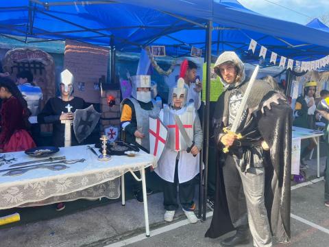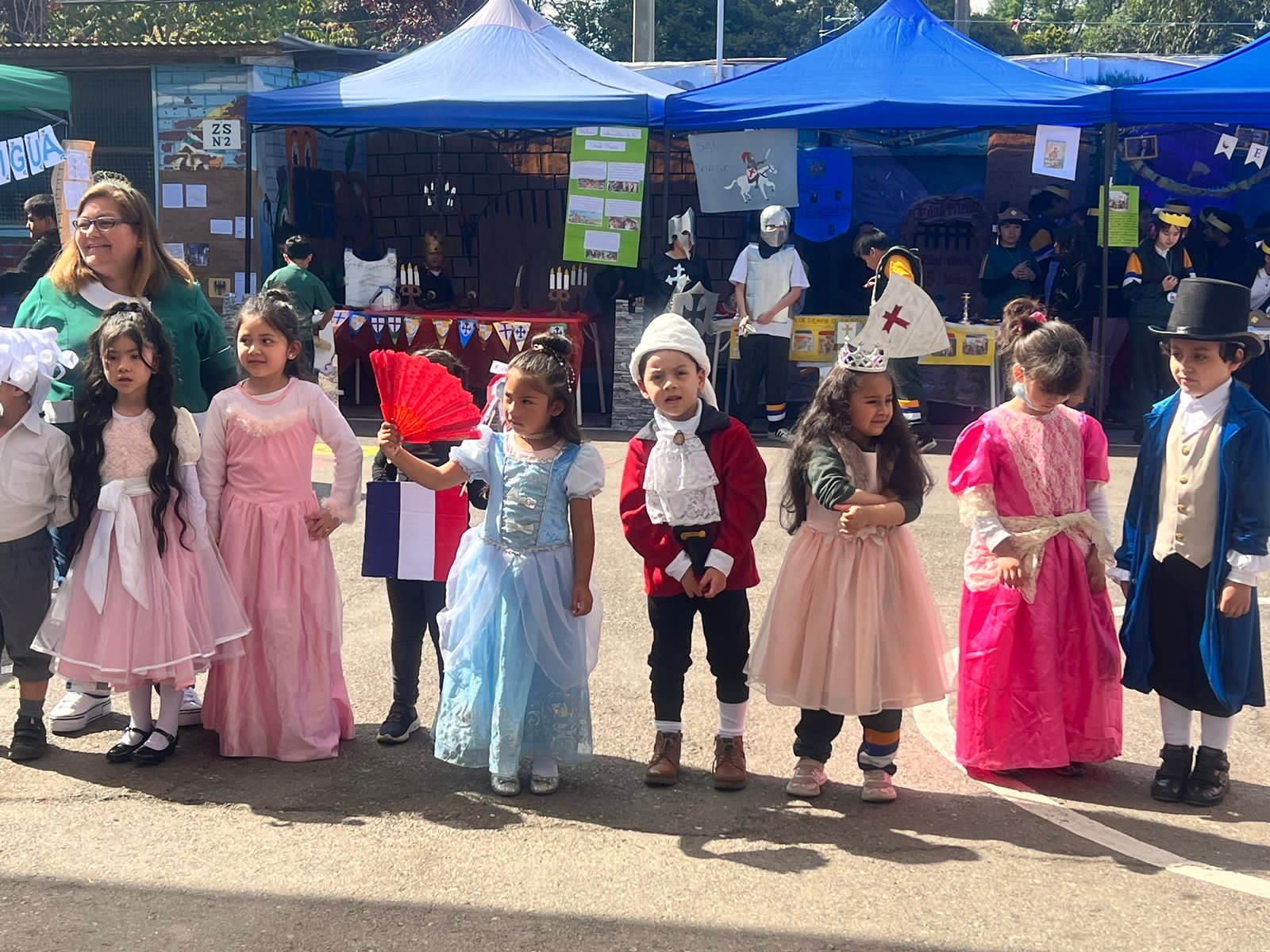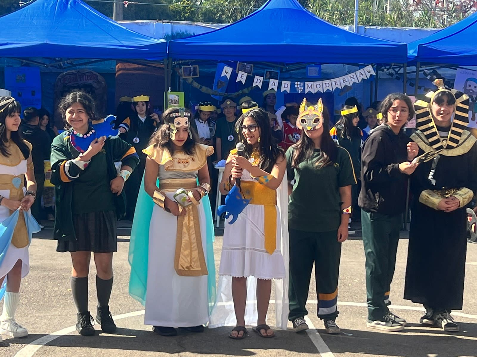 En el marco del Aniversario de nuestro Colegio, continuamos con las actividades en competencia, el día miércoles se realizó una muestra en representación de cada época de la historia, donde cada curso se caracterizó y presentó muestras de simbolismos relacionados a cada época representada.