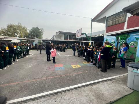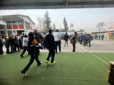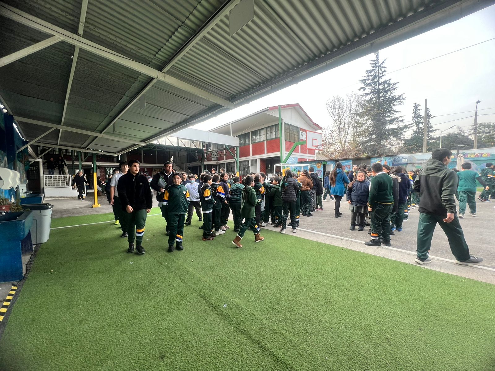 "En el marco de la Semana de la Seguridad Escolar, hoy hemos realizado un simulacro de evacuación de sismo en nuestro establecimiento con el objetivo de realizar ejercicios prácticos en que los estudiantes y funcionarios actúen coordinadamente, trasladándose, de forma rápida y ordenada, a las zonas de seguridad. Con estas acciones nos aseguramos de estar preparados frente a una emergencia"